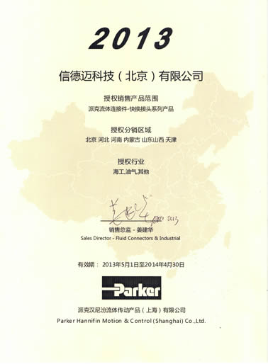 信德迈公司是Parker Hannifin派克.汉尼汾在华北区域的授权分销商;为区域客户提供Parker及其所属品牌的技术服务,现场产品咨询,产品销售, 现场产品测量及维护 等,为客户提供快捷的产品和备件服务,快的报价和货期服务,优势的价格服务。